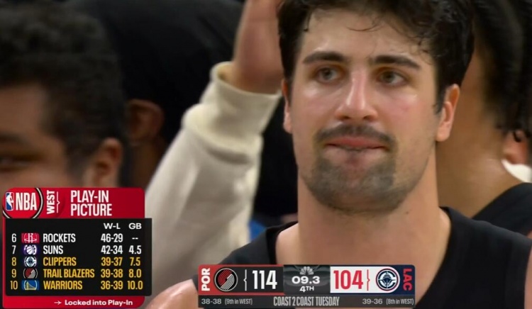 本场比赛过后,快船(39-37)正式无缘西部前六,和开拓者(39-38)和勇士(36-39)锁定了三个附加赛席位。